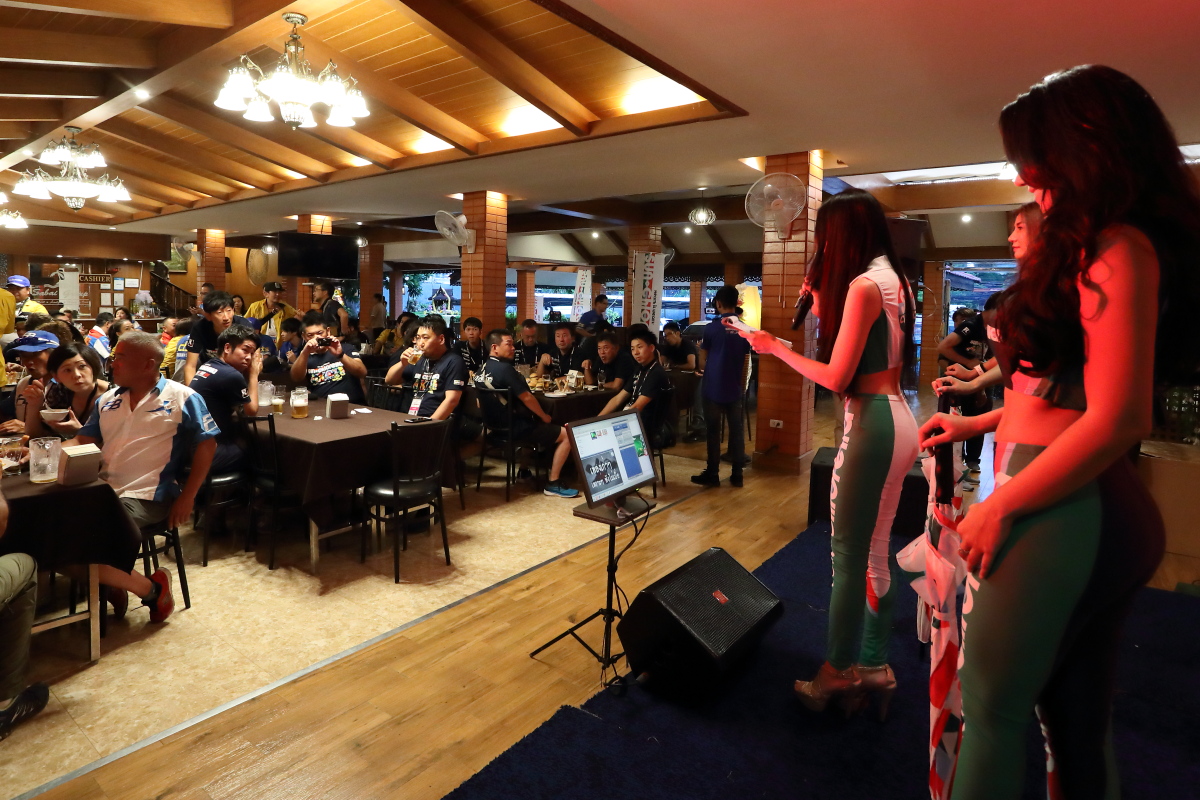 そして18時半からはオフィシャルホテル近くの Sabai Resort Pataya Hotel のプールサイドにて大会メジャースポンサーである「サン・クロレラ」によるウェルカムパーティーが行われた。